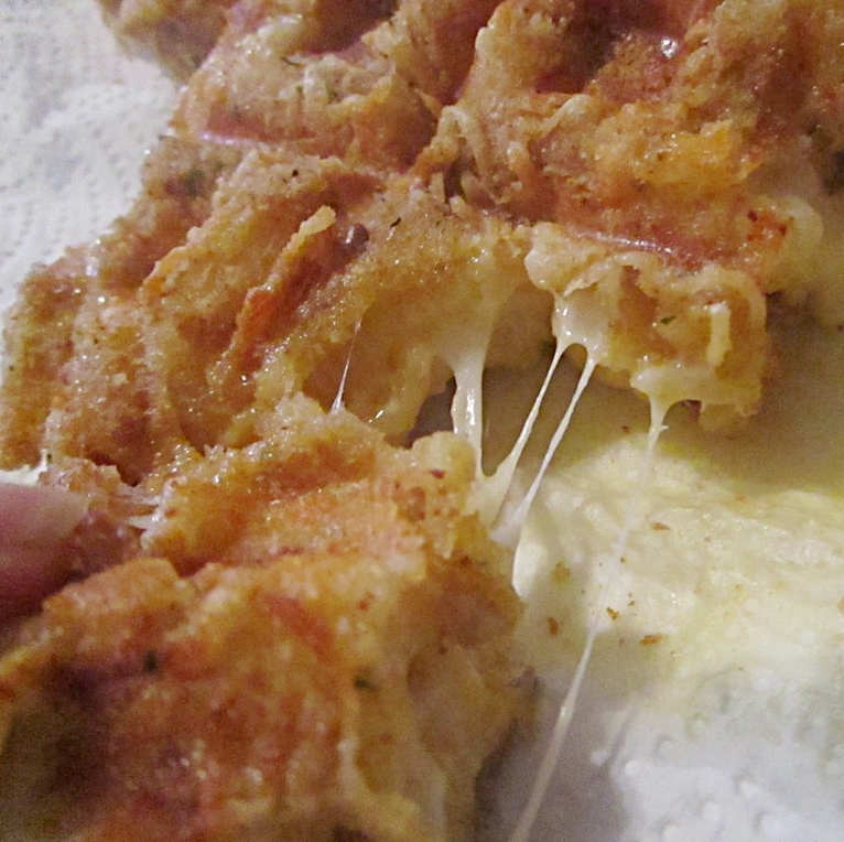 another winner! it’s involved; lots of pounding of chicken breasts and many dip-stations before waffling