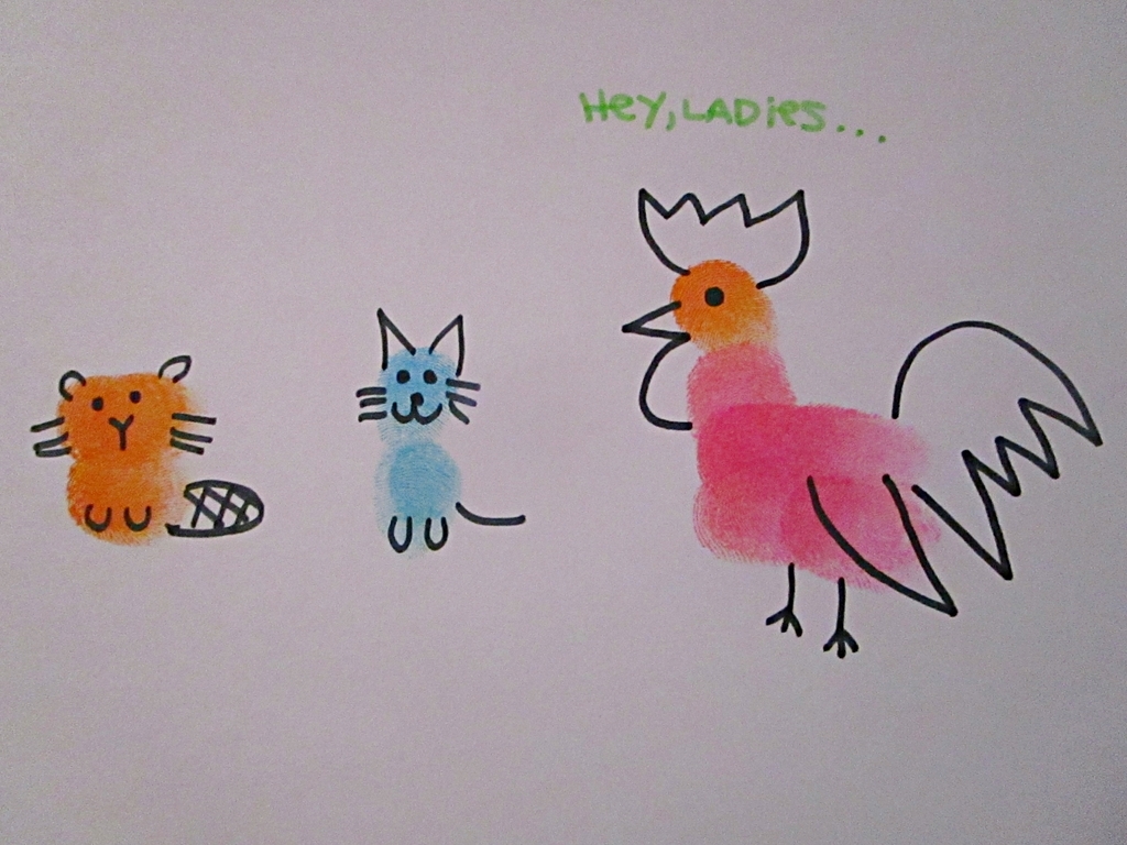this one is off-book – for some reason, ed emberley did not include instructions on how to make a picture of me giving my cat her chemo using fingerprints. very shortsighted, emberley.