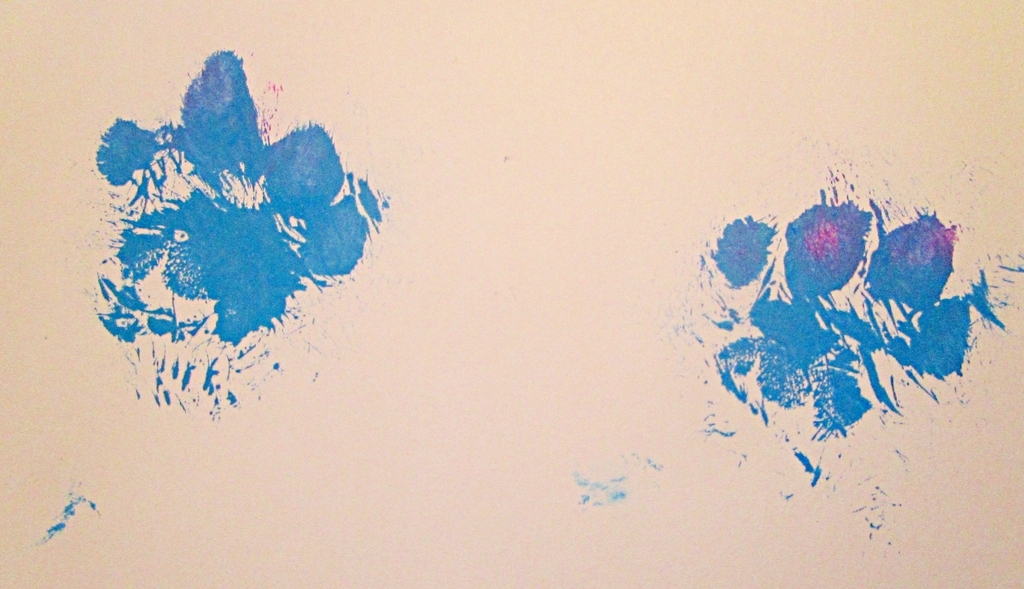 she’s not the best at it, but at least now i have little blue pawprints on my rug!