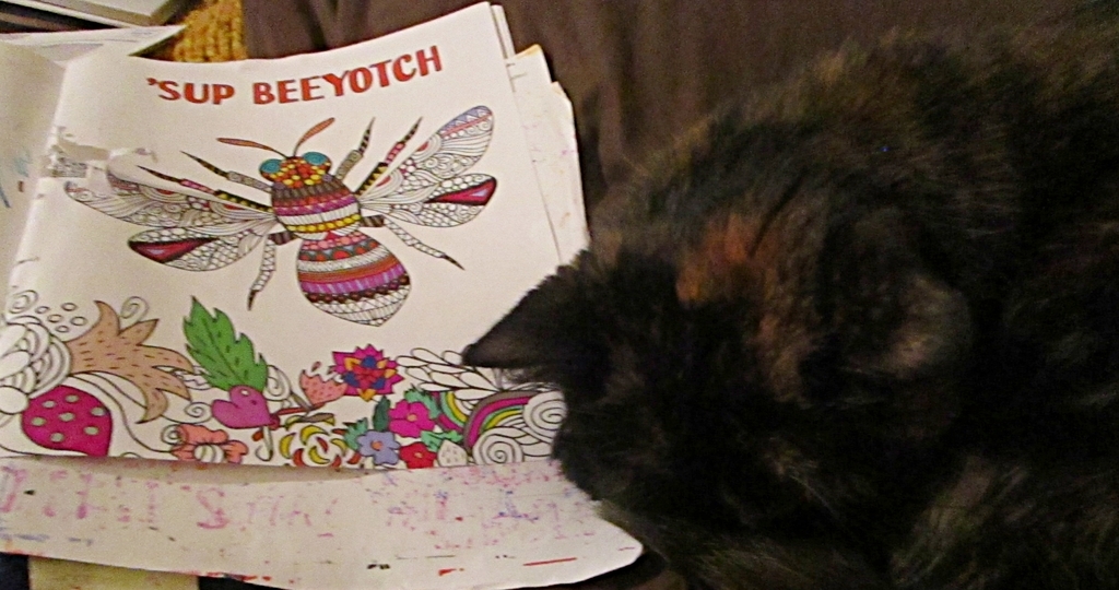 this almost didn’t happen tonight – halfway through my coloring, i turned my back and first there was clawing