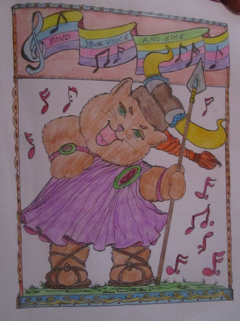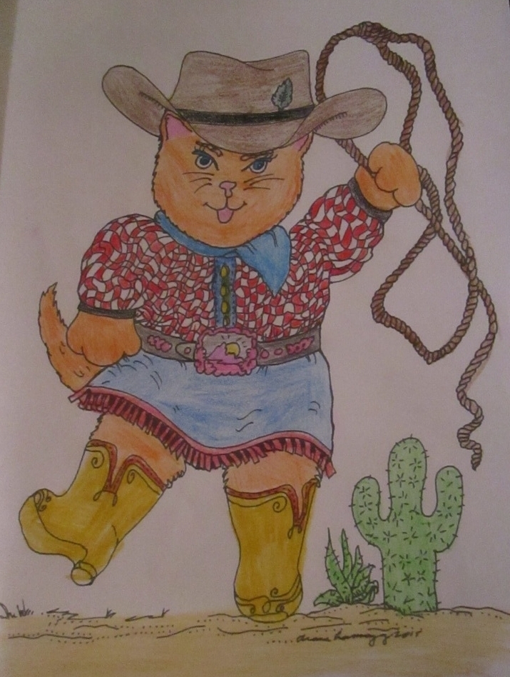 this book only hath 24 pages and february hath 29 days, so i allowed myself a little vacation. and now i’m back. markers are the way to go – it’s a lot quicker to color in these ugly ugly cats and i don’t have to press down as hard to get the color nice and even, so my hand is less distressed afterwards. my eyes are still as distressed as ever from having to look at these cats, but any respite is welcome… look, some cats in a hat. whe!
