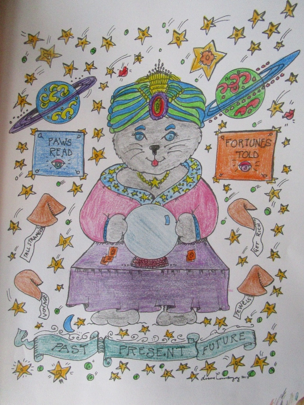 god, so many health violations here. and who had the bright idea to give a cat a giant knife?? arming maggie – not on my to-do list. although if i were hospitalized i wouldn’t have to color any more of these cats.