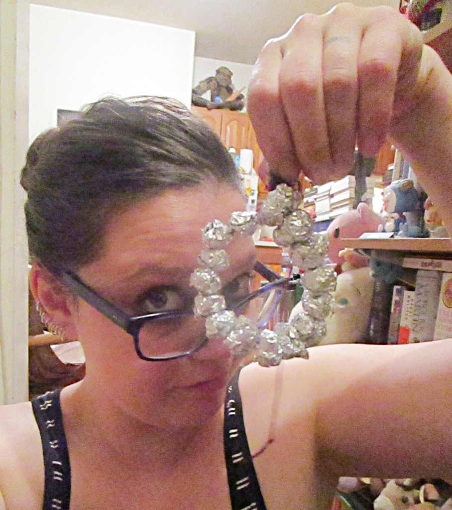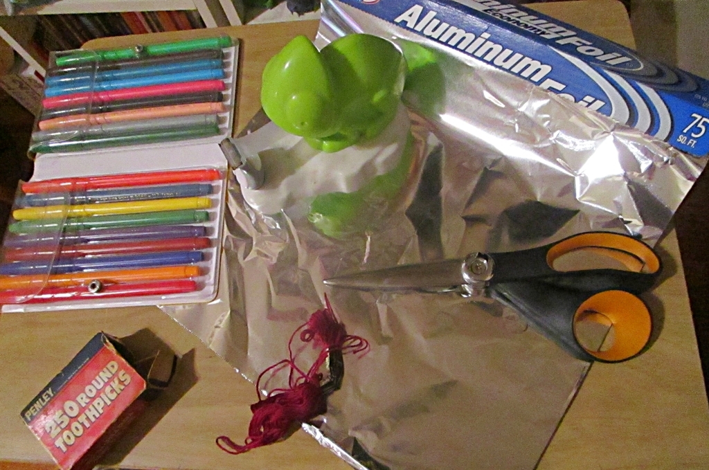 and this one was supposed to be a colorful toy, where aluminum foil was made pretty with markers