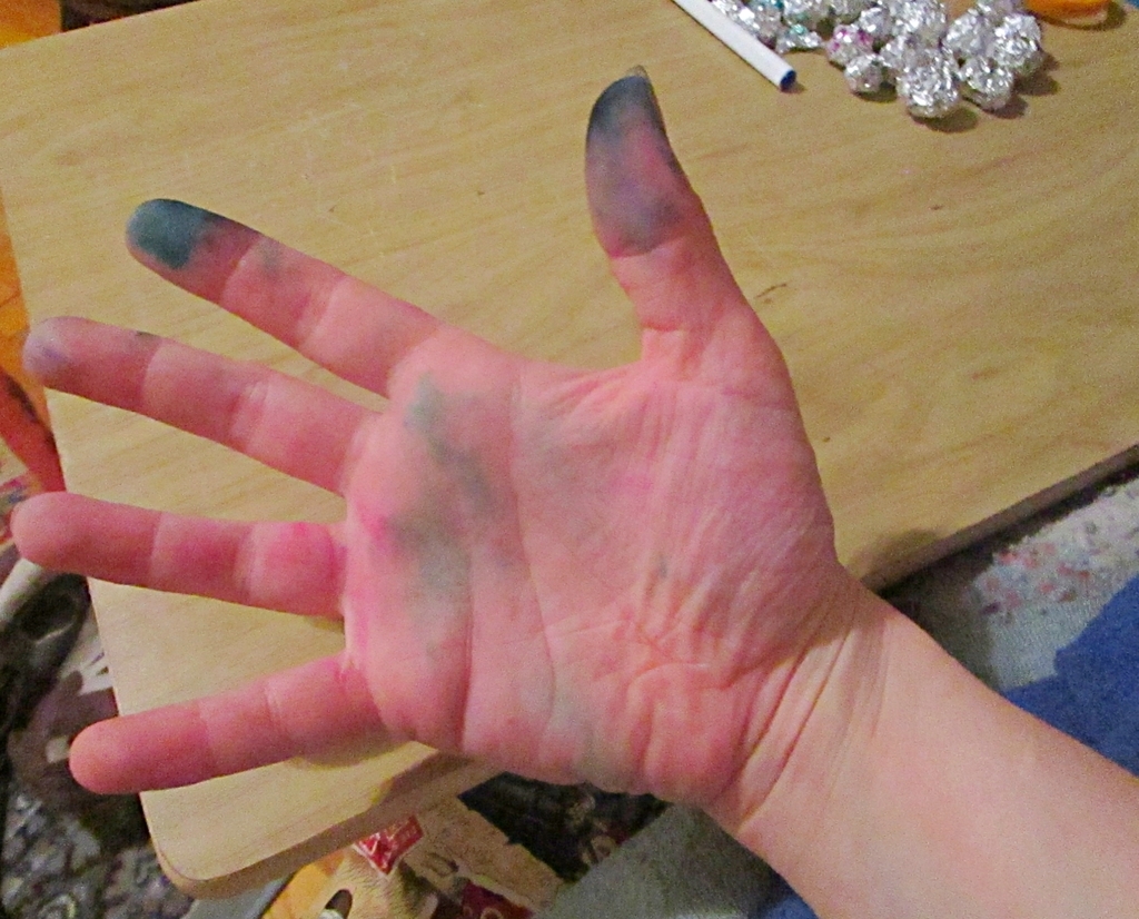 and then rolled into balls. i thought i was using permanent markers, but at any rate, the color slicked right off when balls were formed, absorbing into my hands and making them less pretty than shiny colored balls would have been
