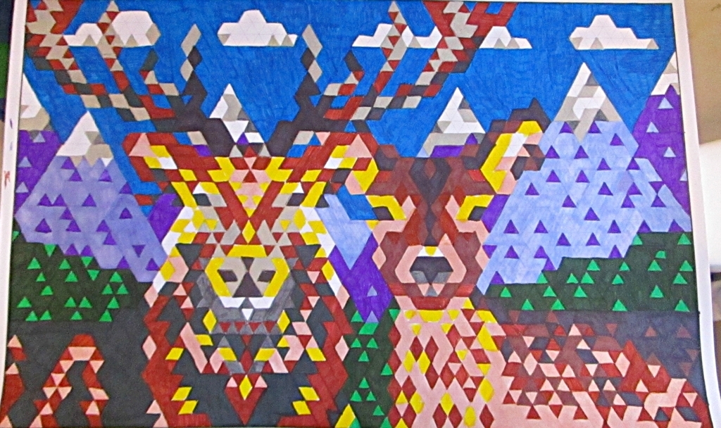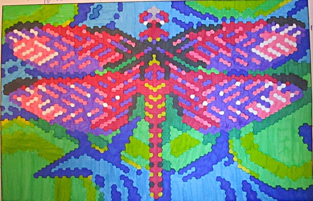 this is the perfect project-book for my limited attention span right now. it’s a coloring book, but it’s a bossy coloring book, telling you exactly which color to slap into which space. no thinking, no deciding, just following directions like a drone. i can manage this.