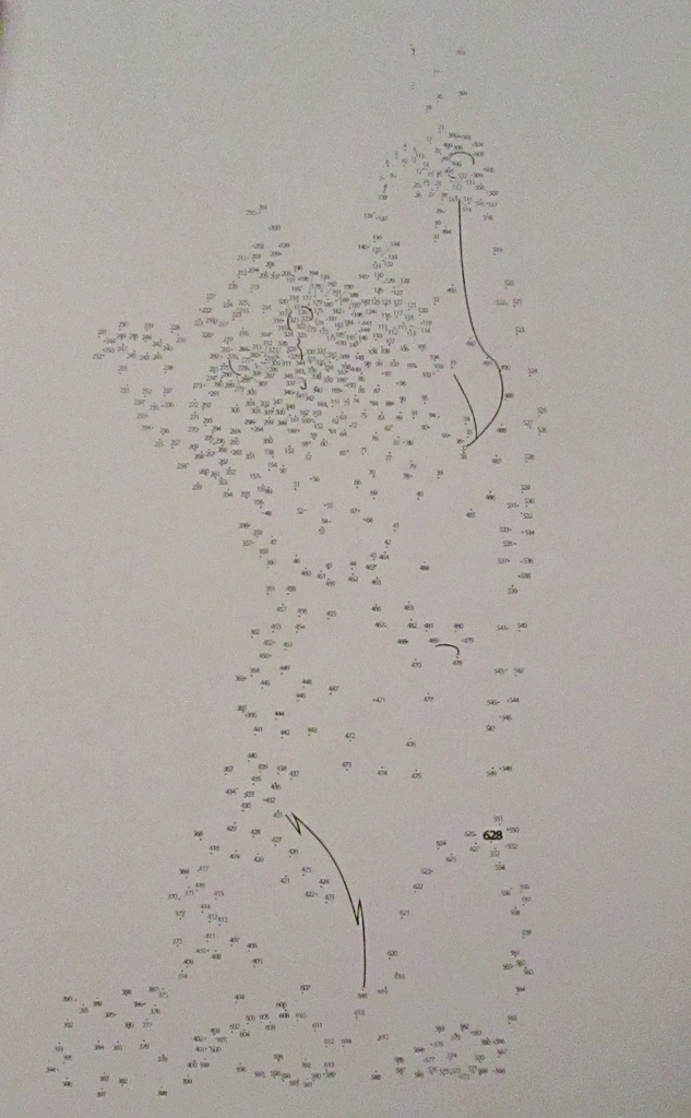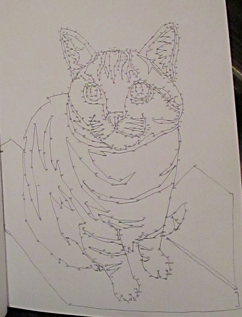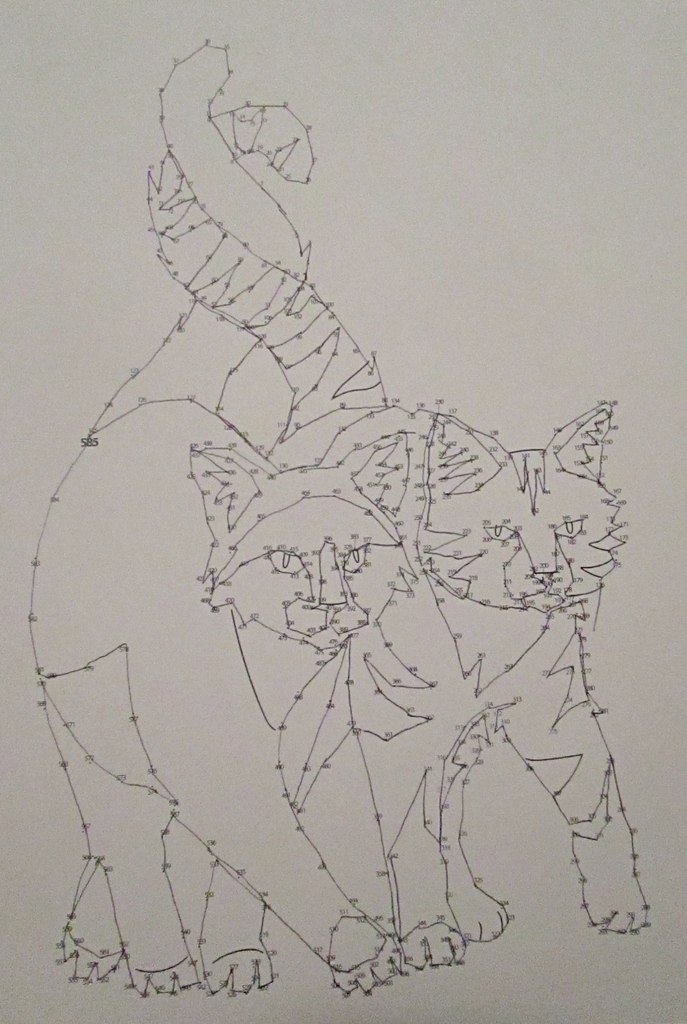 i’m not sure if this one is messy and jaggedy by design or if i somehow messed up the math on this dot-to-dot. in any event—there’s a cat.
