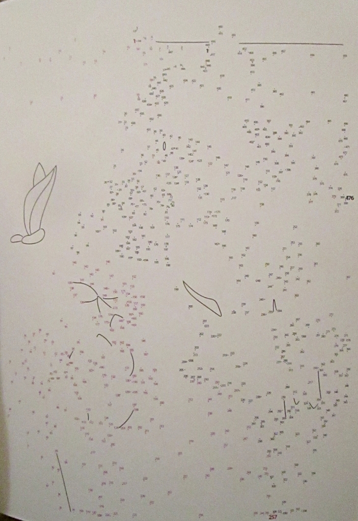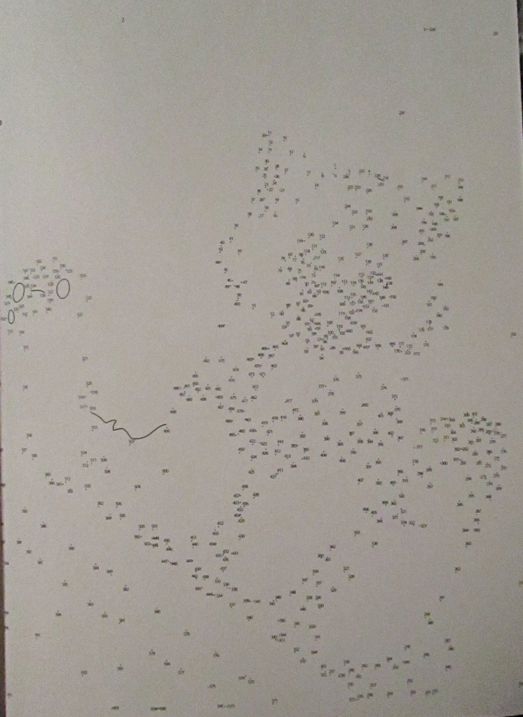 this is a new one for me. this one has two different connect-the-dots paths, in different color ink, and you’re meant to complete them in contrasting colors, adding a whole new depth to the finished work. like so. i suppose it’s effective, but necessary? game-changing? discuss.